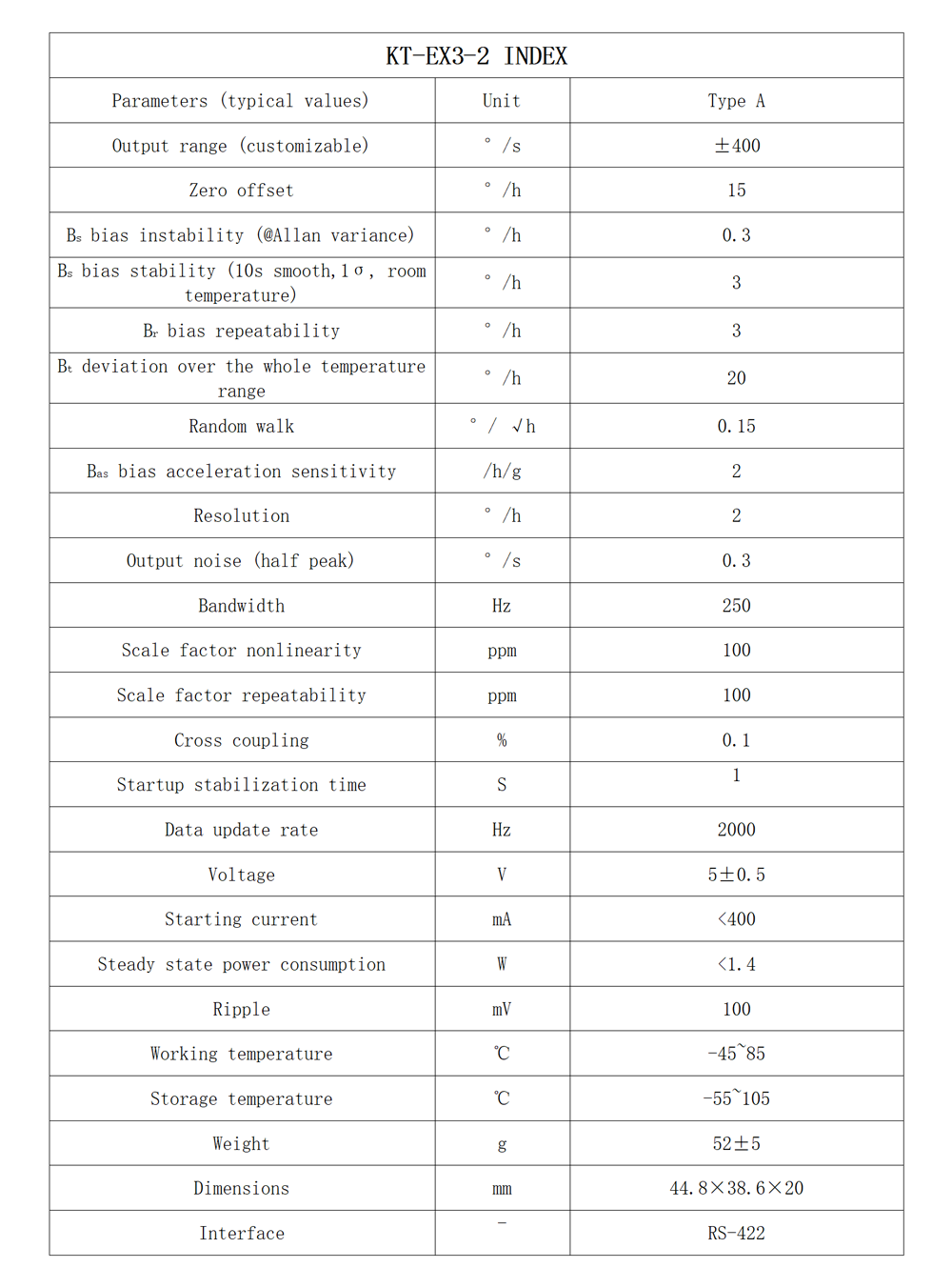 The product utilizes flexible connection technology and incorporates compensation algorithms such as full-temperature compensation, installation misalignment angle compensation, and nonlinear compensation in the software. This ensures that the product maintains excellent performance even in static, dynamic, and harsh environmental conditions. It outputs stable and reliable three-axis angular rate measurement data to users via a high-speed RS-422 serial port after error compensation.