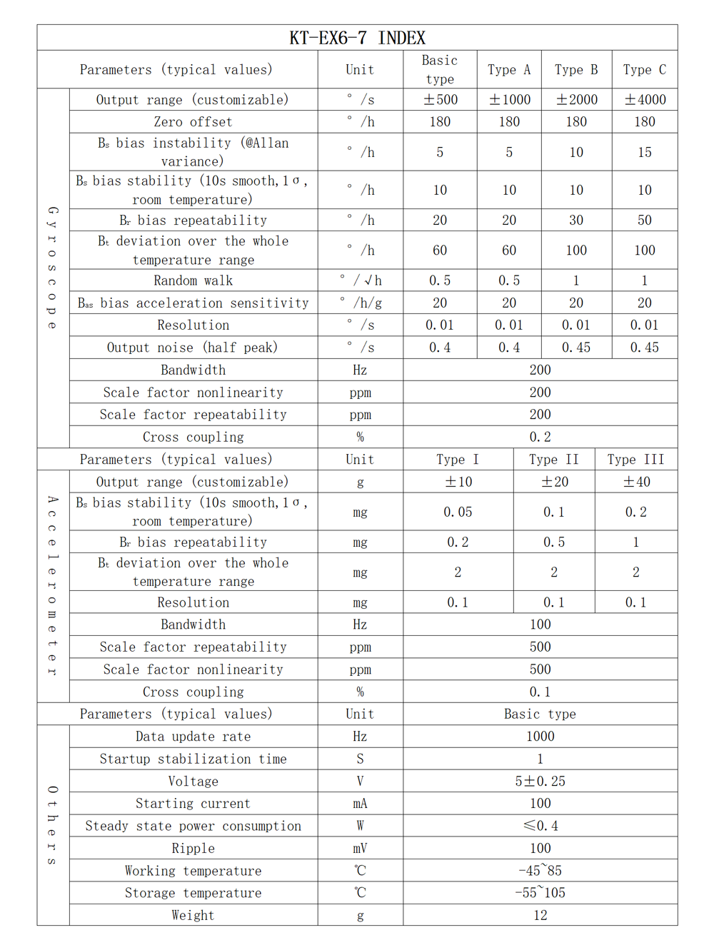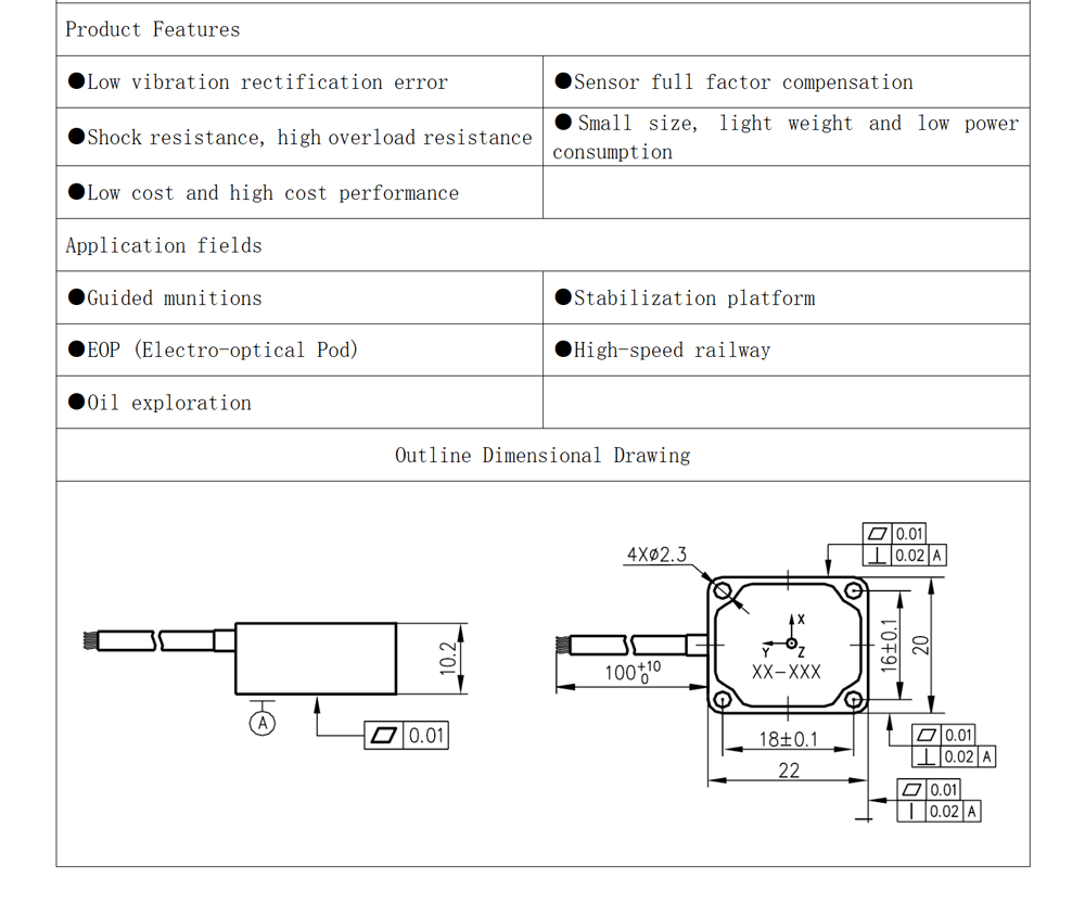 The six-axis MEMS inertial measurement unit consists of MEMS gyro chips, MEMS accelerometer chips, temperature sensors, digital signal processing circuits, and software. It is used for real-time measurement of the three-axis angular rates and three-axis linear accelerations of the carrier.